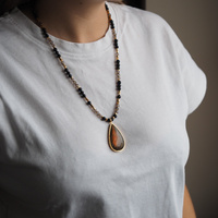 Naszyjnik długi - turmalin, bursztyn, hematyt i srebro pozłacane