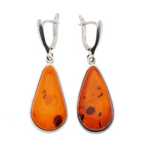 Kolczyki - koniakowy Bursztyn łza i srebro