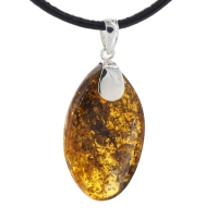 Naszyjnik na rzemieniu - Bursztyn z inkluzjami roślinnymi