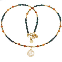 Naszyjnik mix - Malachit, Granat brązowy, Hematyt i srebro złocone