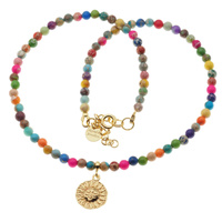 Naszyjnik - Jaspis cesarski kolorowy, słońce i srebro złocone