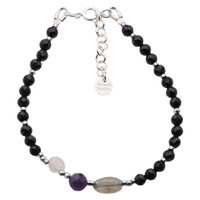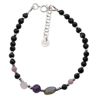 Bransoletka mix - Turmalin, ametyst, kwarc różowy, labradoryt i srebro