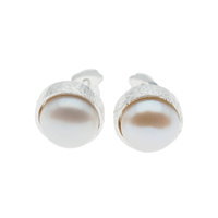 Klipsy - Perły białe koło 11 mm w srebrze młotkowanym