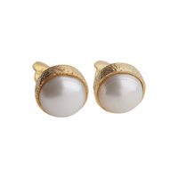 Klipsy - Perły białe koło 10 mm w złoconym srebrze młotkowanym