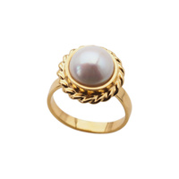Pierścionek - Biała Perła okrągła w srebrze złoconym
