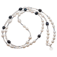 Naszyjnik długi - Perły białe, czarne, hematyt i srebro