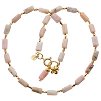 Naszyjnik z kwiatem - Opal Różowy i srebro złocone