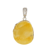 Zawieszka - owalny Bursztyn mleczny w srebrze