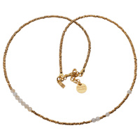 Naszyjnik urodzeniowy czerwiec- białe perły, hematyt i srebro złocone