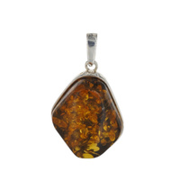 Zawieszka - Bursztyn koniakowy trójkąt z łuskami w srebrze