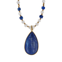 Naszyjnik z Kyanitem i Kamieniem Księżycowym – ręcznie wykonany, srebro pozłacane 925