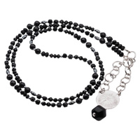 Naszyjnik długi - Turmalin czarny, Onyks, Hematyt i srebro rodowane