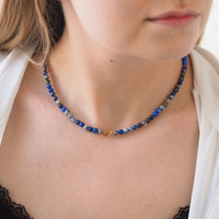 Naszyjnik z sercem - Jaspis cesarski niebieski i srebro złocone