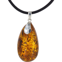 Naszyjnik na rzemieniu - przezroczysty Bursztyn z inkluzją roślinną