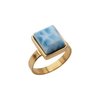 Pierścionek regulowany - okrągły Larimar w srebrze złoconym