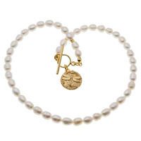 Naszyjnik z ważką - Białe Perły hodowane i srebro złocone