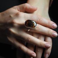 Pierścionek z prostokątnym Bursztynem Koniakowym w srebrze