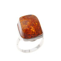 Pierścionek z prostokątnym Bursztynem Koniakowym w srebrze