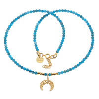 Naszyjnik regulowany - Turmalin czarny kulki, zawieszka księżyc i srebro