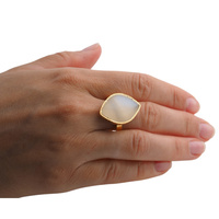 Pierścionek - Kamień Księżycowy łza i srebro złocone, młotkowane