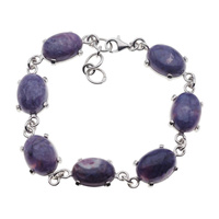 Bransoletka z owalnym czaroitem w srebrze rodowanym.