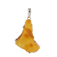 Zawieszka - surowy Bursztyn mleczny w srebrze