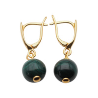 Kolczyki - Malachit kulka w srebrze zloconym