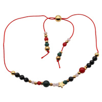 Bransoletka regulowana - Turmalin, Koral, Howlit, gwiazdki i srebro złocone (świąteczne)