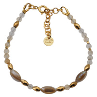 Bransoletka - Kamień Księżycowy, Piryt, Hematyt i srebro złocone