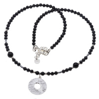 Naszyjnik - Turmalin czarne kulki, Hematyt i srebro