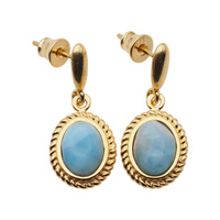 Kolczyki wiszące sztyfty - Larimar owalny w srebrze złoconym