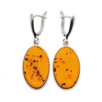 Kolczyki - koniakowy Bursztyn owalny i srebro
