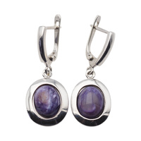 Kolczyki z owalnymi czaroitami w srebrze rodowanym