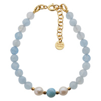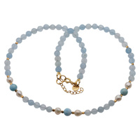 Naszyjnik - Akwamaryn fasetowany, Perły, Larimar, Hematyt i srebro złocone