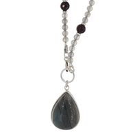 Naszyjnik - cięte Iolit, Amazonit, Hematyt i srebro złocone