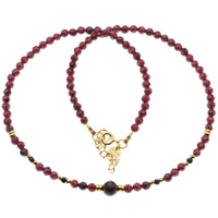 Naszyjnik - Granat, Turmalin czarny, Hematyt i srebro złocone