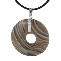 Naszyjnik - Krzemień Pasiasty na rzemieniu ze srebrnymi końcówkami