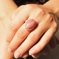 Pierścionek regulowany z Agatem różowym w srebrze złoconym