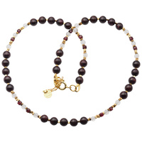 Naszyjnik z Granatem, Kryształem Górskim i Hematytem – srebro złocone 925
