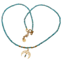 Naszyjnik regulowany - Amazonit kostki, księżyc i srebro złocone