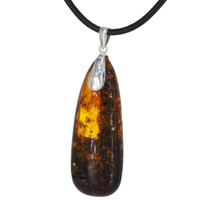 Naszyjnik na rzemieniu - Bursztyn z łuskami w srebrze