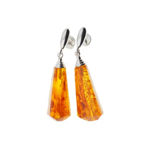 Kolczyki wiszące sztyfty - koniakowy Bursztyn stożki i srebro