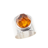 Pierścionek sygnet - Koniakowy Bursztyn fasetowany w srebrze (różne rozmiary)