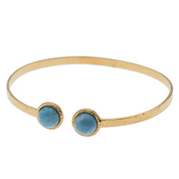 Bransoletka sztywna z okrągłym Larimarem w młotkowanym srebrze złoconym
