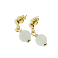 Kolczyki wiszące sztyfty - Kamień Księżycowy kulki i srebro złocone