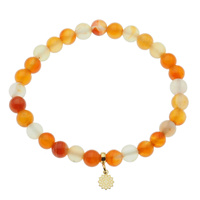 Bransoletka 18 cm - cięty Karneol kulki 10mm i srebro złocone