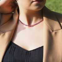 Naszyjnik regulowany - Turmalin kolorowy kulki, zawieszka słońce i srebro złocone