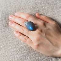 Pierścionek regulowany z Labradorytem w srebrze oksdowanym.