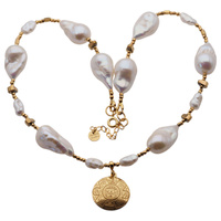 Naszyjnik z aztecką blaszką - Białe Perły hodowane i srebro złocone
