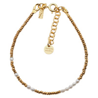 Bransoletka urodzeniowa kwiecień - opal różowy, złoty hematyt i srebro złocone